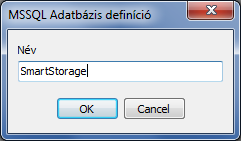 A 3. pontban adathatjuk meg az adatbázis nevét, amelyet rendszerünk használ. Ha üresen hagyjuk, akkor a program lehetőséget ad, hogy újat hozzunk létre. Ha megadjuk, akkor a rendszer a megadott adatbázist fogja használni (de akkor a megadott adatbázisba hozza létre a SmatrStorage adatbázis struktúráját!).